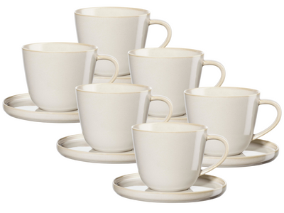 Das Set besteht aus sechs Kaffeetassen mit den dazu passenden Untertassen und ist perfekt für den Alltag oder für besondere Momente mit Gästen. Der dezente \""Tofu\""-Farbton – ein warmes Cremeweiß – verleiht dem Set eine zeitlose Ästhetik und fügt sich nahtlos in jede Tischdekoration ein.