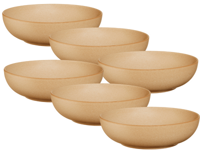 Das Set besteht aus sechs Speisetellern, die durch ihren warmen Farbton "Almond" – ein sanftes, nussiges Beige – und ihre matte, leicht unregelmäßige Glasur begeistern. Die handgefertigt anmutende Optik verleiht jedem Teller eine individuelle Note und sorgt für ein modernes, harmonisches Ambiente auf Ihrem gedeckten Tisch.