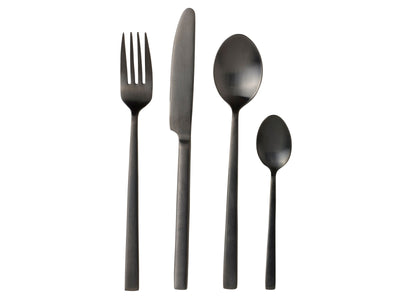 Das 16teilige Besteckset aus schwarzem Edelstahl ist ideal für den Singlehaushalt oder für eine kleine Familie. Das Set beinhaltet aus je 4 Besteckteilen von Gabel, Messer, Löffel und Kaffeelöffel.