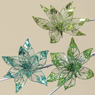 Clipen Sie diese schönen Blüten an Äste oder auch an Ihren Weihnachtsbaum und genießen Sie diese tollen Blumen aus Polyester und Organza.