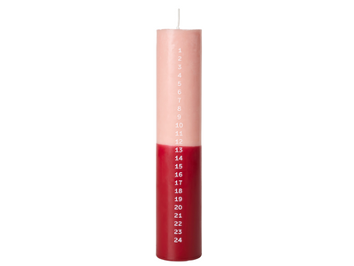 Das Duo Kalenderlicht von Broste Copenhagen verbindet traditionelles skandinavisches Design mit moderner Farbgestaltung. Die Stabkerze ist 25 cm hoch und in zwei Farbbereiche unterteilt: kräftiges Rot und sanftes Rosa. Bedruckt mit weißen Zahlen von 1 bis 24, begleitet sie stilvoll durch die Adventszeit und macht das tägliche Anzünden zu einem besonderen Ritual. Ob auf dem Esstisch, im Wohnzimmer oder als dekoratives Element auf einer festlich gedeckten Tafel – das Kalenderlicht schafft eine warme, stimmungsvolle Atmosphäre. Mit seiner klaren Gestaltung ist es nicht nur ein praktischer Begleiter durch den Dezember, sondern auch ein dekoratives Highlight in der Weihnachtsdekoration.
