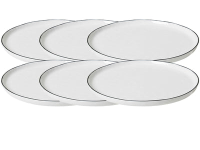 Hergestellt aus hochwertiger Keramik, überzeugen die Brotteller durch ihre robuste und langlebige Qualität. Die weiße Grundfarbe der Teller wird durch den charakteristischen schwarzen Rand der SALT Kollektion betont, was ihnen eine schlichte, aber dennoch moderne Ästhetik verleiht. Durch das handgefertigte Finish ist jeder Teller ein Unikat und weist eine einzigartige Textur auf, die die natürliche Schönheit des Materials unterstreicht.