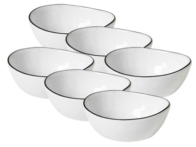 Hergestellt aus hochwertiger Keramik, zeichnen sich die Schalen der SALT Kollektion durch ihr minimalistisches und dennoch elegantes Design aus. Die weiße Grundfarbe wird durch einen charakteristischen schwarzen Rand akzentuiert, was den Schalen eine moderne und gleichzeitig zeitlose Ästhetik verleiht. Jedes Stück wird durch das handgefertigte Finish einzigartig, was eine besondere Haptik und Optik verspricht.