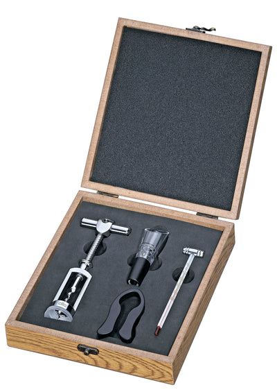 Das cilio Weinset LOMBARDIA 4tlg ist eine hochwertige Weinutensilienkollektion, die Weinliebhaber begeistert. Dieses Set enthält einen Korkenzieher, einen Flaschenverschluss, einen Tropfring und einen Ausgießer, alle aus strapazierfähigem Edelstahl gefertigt. Das klassische Design und die hohe Qualität machen es zu einem idealen Geschenk für Weinliebhaber.