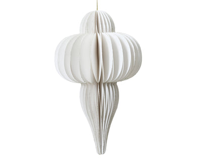 Die schlichte weiße Farbe sorgt für einen zeitlosen Look, der sich mühelos in verschiedene Einrichtungsstile integrieren lässt. Das Papierornament kann vielseitig eingesetzt werden, sei es als Tischdekoration, in Fensterbänken oder als Teil von Geschenken und festlichen Arrangements.