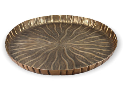 Die Servierplatte besticht durch ihr elegantes, antikes Goldfinish, das eine zeitlose und luxuriöse Atmosphäre schafft. Die fein gearbeitete Oberfläche und die hochwertige Verarbeitung machen sie zu einem echten Blickfang, der sowohl moderne als auch klassische Einrichtungsstile perfekt ergänzt.