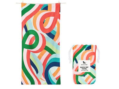 Das Dock & Bay Beach Towel XL Fruit Loops bringt frischen Schwung an den Strand: Mit seinem auffälligen Muster aus geschwungenen, farbenfrohen Loops setzt dieses Tuch ein klares Design-Statement. Die Kombination aus leuchtenden Farben und organischen Formen verleiht dem Strandtuch eine moderne, fröhliche Ausstrahlung – ideal für alle, die es bunt und individuell mögen.