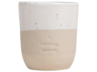 Mit dem Becher „Erstmal Kaffee“ von Eulenschnitt startest du stilsicher und mit einem Augenzwinkern in den Tag. Der liebevoll gestaltete Schriftzug auf der Vorderseite spricht wohl jedem Kaffee-Fan aus der Seele – denn manchmal geht eben wirklich nichts ohne die erste Tasse. Der Becher besteht aus hochwertigem Steingut und wird in einer kleinen Töpferei in Portugal handgefertigt. Mit seinem Fassungsvermögen von ca. 320 ml ist er ideal für Kaffee, Tee oder Kakao – und bringt ganz nebenbei gute Laune auf den Frühstückstisch.