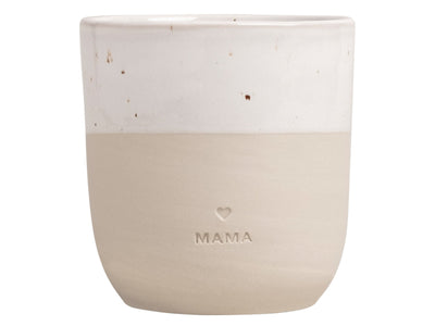 - Hochwertiger Keramikbecher mit feiner Blindprägung: Herz & „Mama“