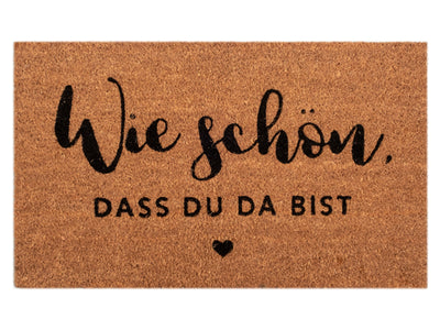 Die Kokos Fußmatte „Wie schön“ von Eulenschnitt heißt dich und deine Gäste mit einem charmanten Schriftzug willkommen. Gefertigt aus natürlicher Kokosfaser und mit einer rutschfesten Unterseite aus PVC, verbindet sie liebevolles Design mit praktischer Funktion. Der handgeschriebene Schriftzug „Wie schön, dass du da bist“ verleiht deinem Eingangsbereich eine warme, persönliche Note – ganz egal, ob vor der Haustür oder im Flur. Mit einer Breite von 75 cm ist sie ideal für größere Türen geeignet und sorgt für ein stilvolles Zuhause gleich beim Eintreten.