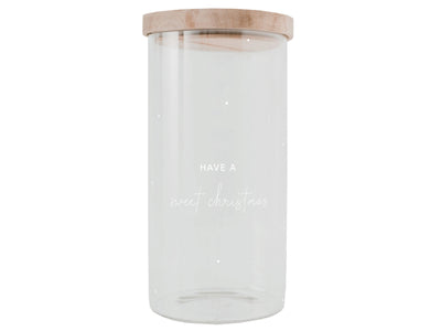 Das Vorratsglas Sweet Christmas von Eulenschnitt bringt weihnachtliche Stimmung in deine Küche. Das Glas besteht aus hochwertigem, hitzebeständigem Borosilikatglas und ist mit einem stilvollen Schriftzug „Sweet Christmas“ verziert. Der Deckel aus edlem Akazienholz schließt das Glas aromadicht ab und sorgt für eine natürliche, warme Optik. Perfekt zur Aufbewahrung von Plätzchen, Nüssen oder winterlichen Leckereien – und ein echter Hingucker auf jedem Tisch oder Regal.