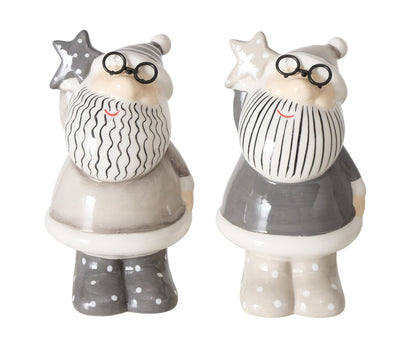 1 Figur / Auswahl nach Lagerbestand - Franyo Weihnachtsmann in Grau/Weiß, 14 cm groß.