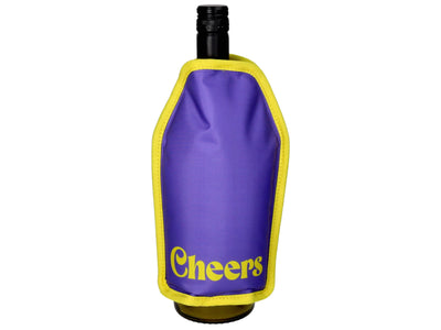 Mit dieser farbenfrohen Kühlmanschette wird jede Flasche zum Statement! Das stylische Design in kräftigem Lila und sonnigem Gelb kombiniert mit dem liebevollen Spruch „Cheers my dears!“ macht sie zum perfekten Begleiter für fröhliche Abende, Picknicks oder stilvolle Aperitifs im Garten.