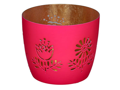 Giftcompany Madras Windlicht M Blumen hot pink/gold 8,5cm