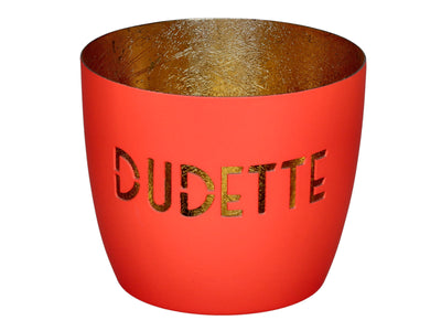 Das Windlicht Madras M von Giftcompany überzeugt mit seinem stylischen Schriftzug „Dudette“ und der auffälligen Farbkombination aus Neon Coral und Gold. Gefertigt aus hochwertigem Eisen, verbindet es moderne Lässigkeit mit einem Hauch Glamour. Die goldene Innenseite reflektiert das Kerzenlicht warm und sorgt für eine gemütliche, einladende Atmosphäre. Ob als dekorativer Eyecatcher, als Geschenk oder als Statement-Piece – das Madras Windlicht „Dudette“ bringt Farbe, Stil und gute Laune in jedes Zuhause.