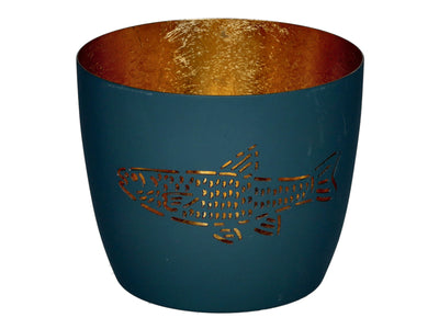 Giftcompany Madras Windlicht M Fisch powder blue/gold 8,5cm
