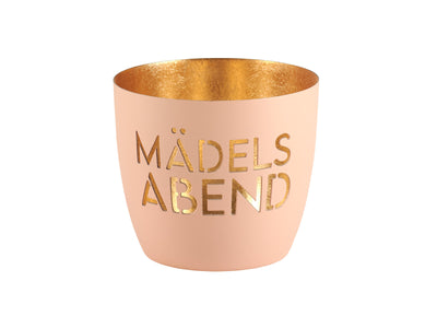 Das Madras Windlicht \Mädelsabend\" von Giftcompany ist das perfekte Accessoire für unvergessliche Abende mit Freundinnen. In einem fröhlichen Pastellorange und mit eleganten goldenen Akzenten gestaltet, bringt es eine lebhafte und festliche Atmosphäre in jeden Raum. Mit einer Höhe von 8,5 cm eignet sich das Windlicht ideal für Tische, Regale oder Fensterbänke und sorgt für ein warmes, einladendes Licht.