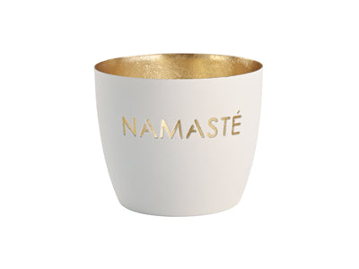 Giftcompany Madras Windlicht M Namaste weiß/gold 8,5cm