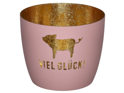Giftcompany Madras Windlicht M Viel Glück rosa/gold 8,5cm