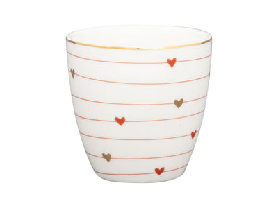 Der Greengate Grace Mini Latte Cup in der Farbe White mit einem Fassungsvermögen von 0,13 Litern ist ein charmantes und funktionales Accessoire für besondere Genussmomente. Diese Mini-Tasse besticht durch ihr schlichtes, aber elegantes Design, das typisch für die Marke Greengate ist. Die strahlend weiße Farbe verleiht der Tasse eine zeitlose und reine Ausstrahlung, die durch kleine, liebevoll gestaltete Herzchen ergänzt wird. Dieses zarte Muster verleiht der Tasse eine süße und verspielte Note, die sie zu einem besonderen Hingucker macht.