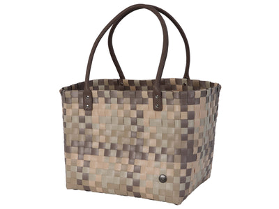 Die Mingle Shopper S von Handed By ist der ideale Begleiter für alle, die Stil, Funktionalität und Nachhaltigkeit in einer Tasche vereint wissen möchten. Das auffällige Flechtmuster in der Farbe liver mix setzt modische Akzente und macht jede Alltagsgarderobe zu etwas Besonderem. Ob für die Sauna, den Wochenendtrip oder einen Tag am Strand – mit ihren Maßen von 32 × 25 × 28 cm bietet diese Tasche ausreichend Stauraum für alles, was du brauchst. Die breiten, langen Tragegriffe aus PU-Leder sorgen für ein angenehmes Tragegefühl – sowohl in der Hand als auch bequem über der Schulter. Handgefertigt aus recyceltem Kunststoff ist die Tasche pflegeleicht, wasserabweisend und ein Statement für umweltbewusstes Design.
