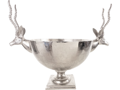 Die Hoff-Interieur Pokalschale mit einem Hirschmotiv, mit den Maßen 47 x 78 x 35,5 cm, ist eine elegante und zugleich rustikale Schale. Diese imposante Schale ist nicht nur ein Blickfang für Ihre Tischdekoration, sondern verleiht auch jedem Fest oder Empfang eine gehobene Note. Das Hirschmotiv verleiht der Schale einen traditionellen und gemütlichen Charme, der perfekt zu einer festlichen Atmosphäre passt. Hochwertig verarbeitet und mit Liebe zum Detail gestaltet, ist diese Pokalschale ein einzigartiges Element, das Ihre Tischdekoration bereichert und Ihre Gäste beeindruckt.