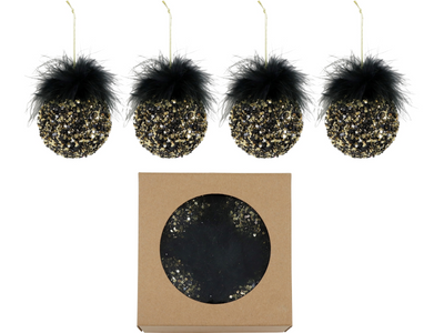 Die Hoff-Interieur Vintage Box "Black Beauty" in Schwarz mit einem Durchmesser von 8 cm ist ein charmantes Set aus vier Baumanhängern für Ihre Weihnachtsdekoration. Diese Vintage Boxen verleihen Ihrem Weihnachtsbaum einen Hauch von nostalgischem Flair und elegantem Stil. Mit ihrer klassischen Form und dem stilvollen Schwarz sind sie ein Blickfang auf jedem Weihnachtsbaum. Hochwertig verarbeitet und mit liebevollen Details gestaltet, fügen sich die Kugeln nahtlos in Ihr festliches Ambiente ein und verbreiten eine warme und einladende Atmosphäre während der Feiertage. Ein unverzichtbares Element, um Ihren Weihnachtsbaum zu verschönern und festliche Stimmung zu verbreiten.