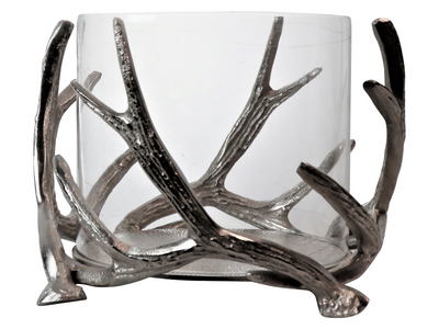 Hoff-Interieur Windlicht Geweih silber 28 x 18 cm