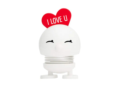 Der Hoptimist Love Bimble S in der Farbe Weiß ist eine charmante Variante der beliebten dänischen Designfigur, die ganz im Zeichen der Liebe steht. Mit seinem runden Körper, dem fröhlichen Gesichtsausdruck und dem typischen federnden Kopf zaubert er jedem Betrachter ein Lächeln ins Gesicht. Die Figur ist etwa 7,2 cm hoch und besteht aus einer Kombination aus ABS-Kunststoff und Stahl.