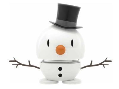 Der Hoptimist Snowman S in der Farbe Weiß ist eine fröhliche Winteredition der beliebten dänischen Designfigur. Mit seinem kugelrunden Körper, dem freundlichen Gesichtsausdruck und dem typischen federnden Kopf verbreitet er sofort gute Laune. Die Figur ist etwa 7,8 cm hoch und besteht aus einer Kombination aus ABS-Kunststoff und Stahl.