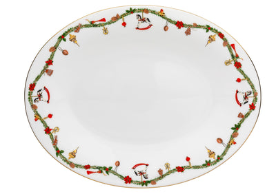 Die feine und filigrane Girlande mit ihren liebevoll ausgearbeiteten Schmuckhängern, kommt auf dem warm weißen Bone China Porzellans besonders gut zur Geltung. Jeder Artikel der Serie wurde individuell gestaltet. Schaukelpferd, Weihnachtsglöckchen, Nikolausstiefel oder Zuckerstange, Spielzeuge oder Geschenkpakete- auf jedem Artikel lässt sich etwas Neues entdecken....