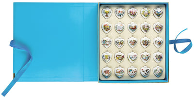 Wunderschöne Miniherzen finden sich in dem limitierten Setzkasten. Der Setzkasten mit den 25 Porzellanherzen ist auf 1000 Stück weltweit limitiert und daher ein begehrtes Sammlerstück. Die Herzen zeigen die Motive der Miniherzen von 1993 bis 2017.