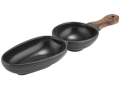 Die beiden Schalen des Servier-Stick sind aus Porzellan und der Griff aus Akazienholz. Auf der gedeckten Tafel ist der Servier-Stick ein wahrer Hingucker.
