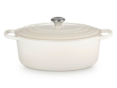Der Bräter Signature von Le Creuset in der Farbe Meringue vereint traditionelle Handwerkskunst mit modernem Design. Gefertigt aus hochwertigem emailliertem Gusseisen, überzeugt er durch seine exzellente Wärmespeicherung und gleichmäßige Wärmeverteilung – ideal für langsames Schmoren, Braten und Garen im Ofen oder auf dem Herd. Mit einer Größe von 33cm bietet der Bräter ausreichend Platz für größere Fleischstücke, Geflügel oder Aufläufe und ist damit perfekt für gesellige Runden und Familienessen geeignet. Die robuste Emaillierung ist besonders widerstandsfähig, pflegeleicht und sorgt für eine lange Lebensdauer. Dank der ergonomischen Griffe lässt sich der Bräter sicher und komfortabel transportieren, selbst mit Ofenhandschuhen. Der dicht schließende Deckel bewahrt Aromen und Feuchtigkeit im Inneren, sodass jedes Gericht besonders saftig und geschmackvoll gelingt. Ob für deftige Schmorgerichte oder feine Festtagsmenüs – der Le Creuset Bräter Signature ist ein unverzichtbares Kochgeschirr für anspruchsvolle Genießer und Liebhaber zeitloser Qualität.