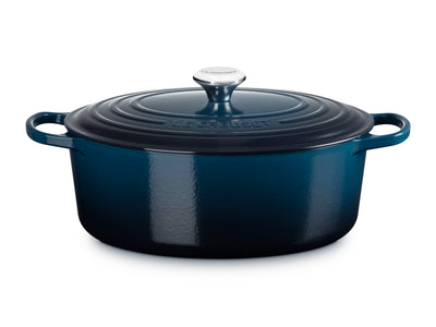 Der Bräter Signature von Le Creuset in der Farbe Nuit vereint traditionelle Handwerkskunst mit modernem Design. Gefertigt aus hochwertigem emailliertem Gusseisen, überzeugt er durch seine exzellente Wärmespeicherung und gleichmäßige Wärmeverteilung – ideal für langsames Schmoren, Braten und Garen im Ofen oder auf dem Herd. Mit einer Größe von 33cm bietet der Bräter ausreichend Platz für größere Fleischstücke, Geflügel oder Aufläufe und ist damit perfekt für gesellige Runden und Familienessen geeignet. Die robuste Emaillierung ist besonders widerstandsfähig, pflegeleicht und sorgt für eine lange Lebensdauer. Dank der ergonomischen Griffe lässt sich der Bräter sicher und komfortabel transportieren, selbst mit Ofenhandschuhen. Der dicht schließende Deckel bewahrt Aromen und Feuchtigkeit im Inneren, sodass jedes Gericht besonders saftig und geschmackvoll gelingt. Ob für deftige Schmorgerichte oder feine Festtagsmenüs – der Le Creuset Bräter Signature ist ein unverzichtbares Kochgeschirr für anspruchsvolle Genießer und Liebhaber zeitloser Qualität.