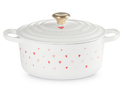 Der runde Le Creuset Bräter Signature Hearts mit 22 cm Durchmesser und einem Fassungsvermögen von 3,3 Litern vereint romantisches Design mit bewährter Qualität. Gefertigt aus emailliertem Gusseisen sorgt er für eine gleichmäßige Wärmeverteilung und hervorragende Wärmespeicherung – ideal zum Braten, Schmoren und Garen. Die strapazierfähige Emaille-Beschichtung ist pflegeleicht, aromaneutral und schützt das Material dauerhaft. Mit seinem dekorativen Herz-Design und der typischen Le Creuset Farbbrillanz wird dieser Bräter zum besonderen Blickfang in jeder Küche. Er ist für alle Herdarten, einschließlich Induktion, geeignet und kann auch im Backofen verwendet werden – perfekt zum stilvollen Zubereiten und Servieren.