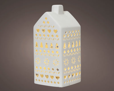 Lumineo LED Haus Porzellan weiß 11x11x22,8cm