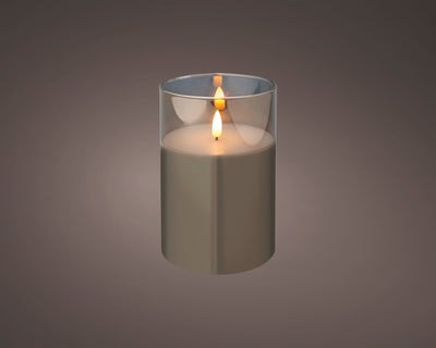 - Elegante LED Kerze aus Wachs mit Glasüberzug in Rauchgrau