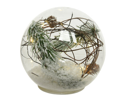 Die große Glaskugel zum Aufstellen ist mit künstlichem Kiefergrün und 15 LED gefüllt. Sie benötigen zur Beleuchtung der Kugel 3 AA Batterien, die nicht im Lieferumfang enthalten sind. Nur für den Innenbereich. Inklusive 6 Stunden Timer.