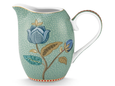Der PIP STUDIO Blooming Tales Blue Krug Small ist ein charmantes Accessoire für stilvolles Servieren. Das fein ausgearbeitete florale Muster in klassischem Blau verleiht dem kleinen Krug eine elegante und zugleich frische Ausstrahlung. Gefertigt aus hochwertigem Porzellan überzeugt er durch seine glatte Oberfläche und angenehme Haptik. Mit einem Fassungsvermögen von 250 ml eignet er sich ideal für Milch, Sahne, Sirup oder kleine Mengen Wasser. Ob auf dem Frühstückstisch, beim Kaffee oder als dekoratives Detail – dieser Krug bringt stilvolle Leichtigkeit auf jede Tafel.