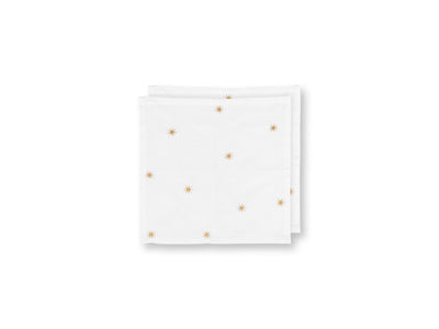 Die PIP STUDIO \Dot Delight\" Servietten mit goldener Stickerei von Sternen verleihen dem gedeckten Tisch einen festlichen Touch. Die eleganten Servietten sind mit hochwertigen Stickereien verziert und bringen einen Hauch von Glamour zu jedem Anlass, indem sie Stil und Funktionalität vereinen.