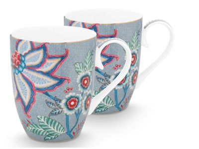 PIP STUDIO Flower Festival Henkelbecher Light Blue 350ml Set2