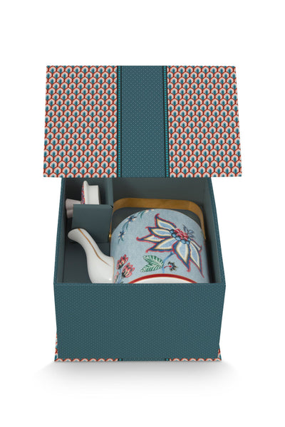 PIP STUDIO Flower Festival Oriental Geschenkset Teekanne blau 1l