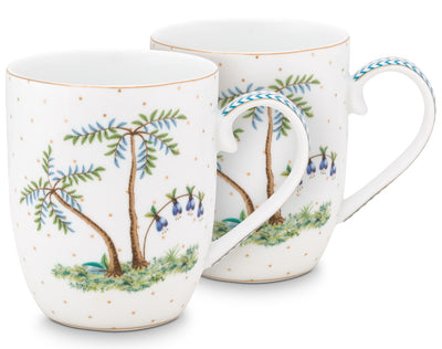 Mit der Jolie Kollektion entführt PIP STUDIO uns auf eine Reise auf eine einsame Insel. Einzigartige tropische Blumen und Pflanzen, bunte Früchte und Palmen machen diese Insel zu einem traumhaft schönen Ort. Für ein festliches Urlaubsfeeling werden auf den Geschirrteilen ein seltener weißer Reiher und exotische Pflanzenarten mit Blumen und goldenen Punkten kombiniert.