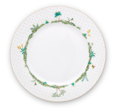 Mit der Jolie Kollektion entführt PIP STUDIO uns auf eine Reise auf eine einsame Insel. Einzigartige tropische Blumen und Pflanzen, bunte Früchte und Palmen machen diese Insel zu einem traumhaft schönen Ort. Für ein festliches Urlaubsfeeling werden auf den Geschirrteilen ein seltener weißer Reiher und exotische Pflanzenarten mit Blumen und goldenen Punkten kombiniert.