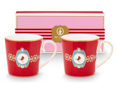 PIP STUDIO Love Birds Medallion Red Henkelbecher Large 0,25l Set2