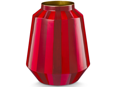 Gefertigt aus robustem Eisen überzeugt die Vase mit einer matten Oberfläche und einem schlichten, dennoch ausdrucksstarken Look. Die dunkelrote Farbe sorgt für Wärme und Tiefe – ideal für saisonale Dekorationen oder als Solostück auf Tisch, Konsole oder Fensterbank.