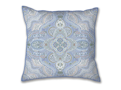 Gefertigt aus hochwertiger Baumwolle mit feiner Struktur, fühlt sich der Bezug angenehm weich und hautfreundlich an. Eine feine Paspelierung in dezentem Hellblau rahmt das Motiv stilvoll ein, während der verdeckte Reißverschluss für eine saubere Optik und einfaches Abziehen sorgt. Mit den Maßen 53 × 53 cm ist das Kissen ideal als dekoratives Zierkissen auf Sofa, Bett oder Sessel geeignet – gleichzeitig bietet es angenehmen Komfort als stilvolle Rückstütze.
