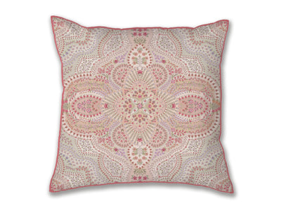 Hochwertiger Baumwollbezug mit feiner Struktur sorgt für ein angenehm weiches, hautfreundliches Gefühl. Die schmale, hellrosa Paspelierung rahmt das Motiv stilvoll ein, während der verdeckte Reißverschluss eine saubere Optik und unkompliziertes Beziehen zusichern. Mit den Maßen 53 × 53 cm ist das Kissen ideal als dekoratives Zierkissen oder als weiche Rückenstütze geeignet.