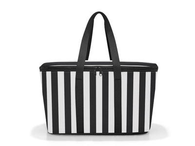Die reisenthel coolerbag summerstripes black ist eine robuste, isolierte Kühltasche im klassischen schwarz-weißen Streifen-Design. Sie wurde entwickelt, um Speisen und Getränke unterwegs kühl und frisch zu halten – ideal für Picknick, Strand, Grillabend oder den Einkauf mit sensiblen Lebensmitteln.